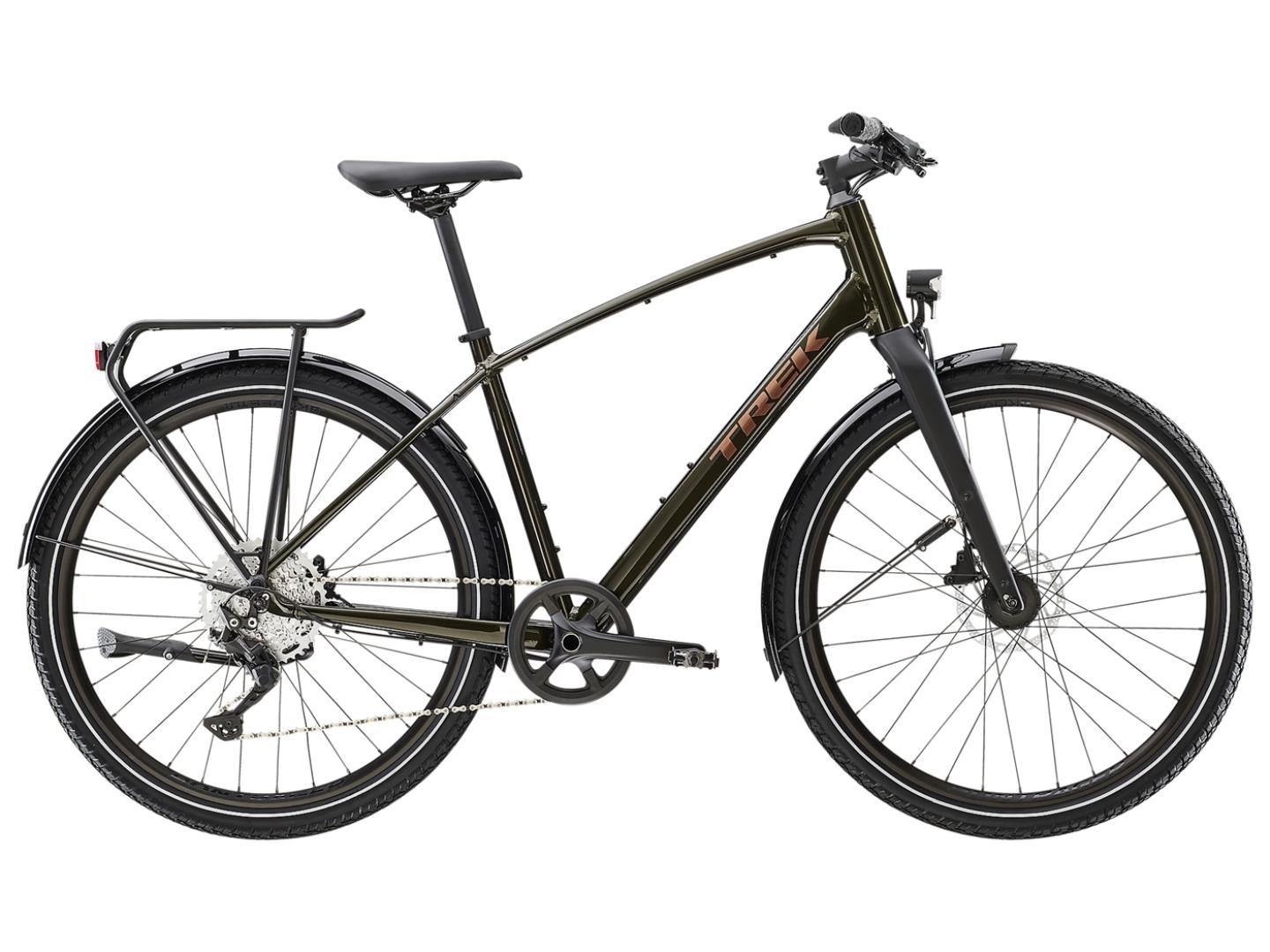 Ένα ελαφρύ πλαίσιο αλουμινίου με κομψή εσωτερική δρομολόγηση καλωδίων, ένα ελαφρύ carbon πιρούνι, φαρδιοί Tubeless Ready τροχοί Bontrager Kovee 650b και φαρδιά ελαστικά 50c για ικανότητα και άνεση σε ποικίλα εδάφη και ένα απλό σύστημα μετάδοσης κίνησης 1×10 Shimano Deore που καταργεί τον μπροστινό εκτροχιαστή για ευκολότερη και αμεσότερη λειτουργία. Μην ανησυχείτε, η κασέτα ευρείας εμβέλειας 11-46 εξακολουθεί να σας παρέχει όλα τα εργαλεία που χρειάζεστε για να κατακτήσετε λόφους και να κινηθείτε γρήγορα στην ευθεία. Επιπλέον, ένα δυναμό στο κέντρο του εμπρόσθιου τροχού τροφοδοτεί τα εμπρός και πίσω φώτα, ισχυρά δισκόφρενα, εργονομικές λαβές, λασπωτήρες, βάση στήριξης και πίσω σχάρα συμβατή με MIK.