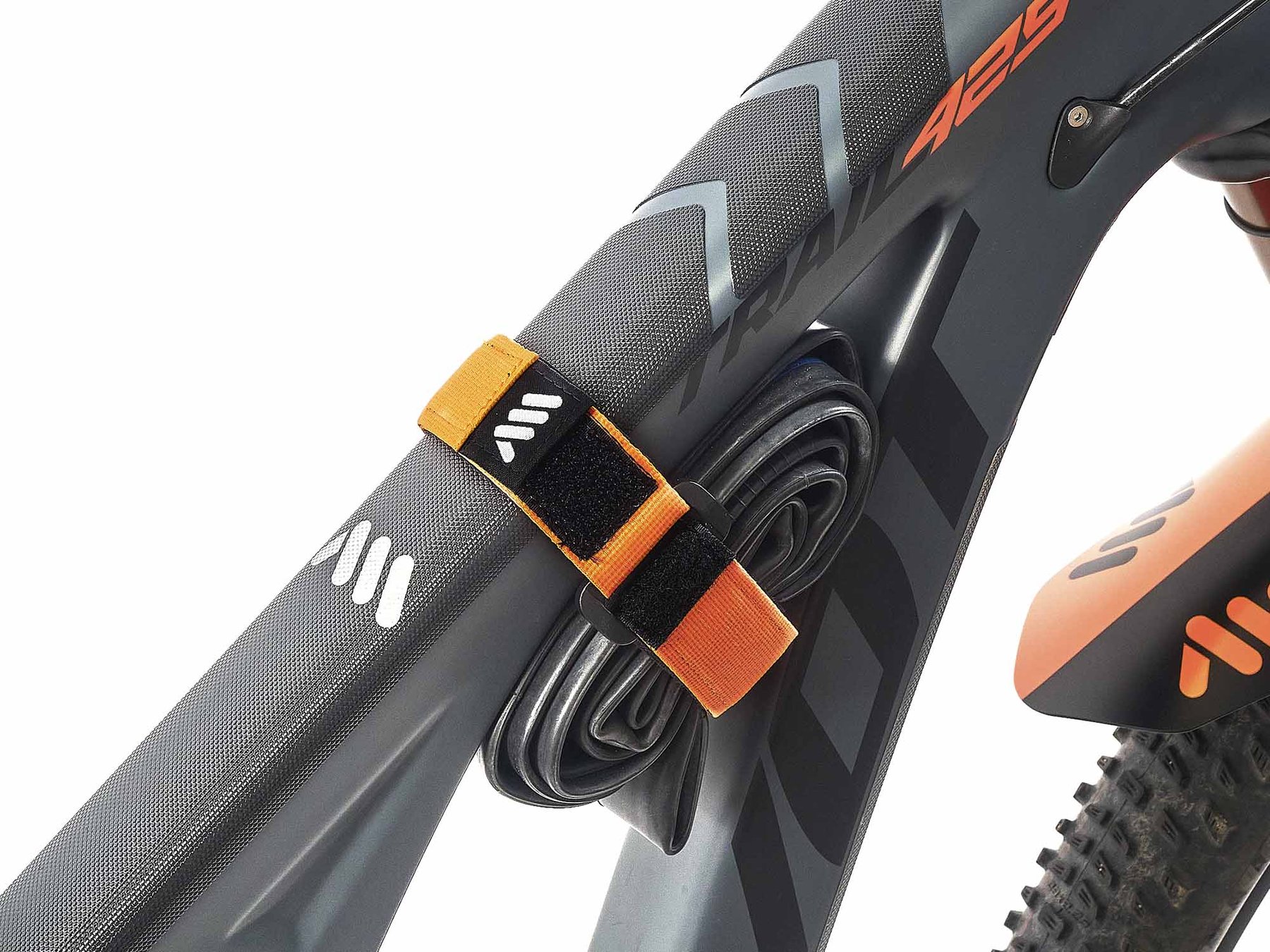 Orange color. Carry a tube, CO2 cartridge and tire levers. An alternative to AMS silicone strap and to backpacks or fanny packs.