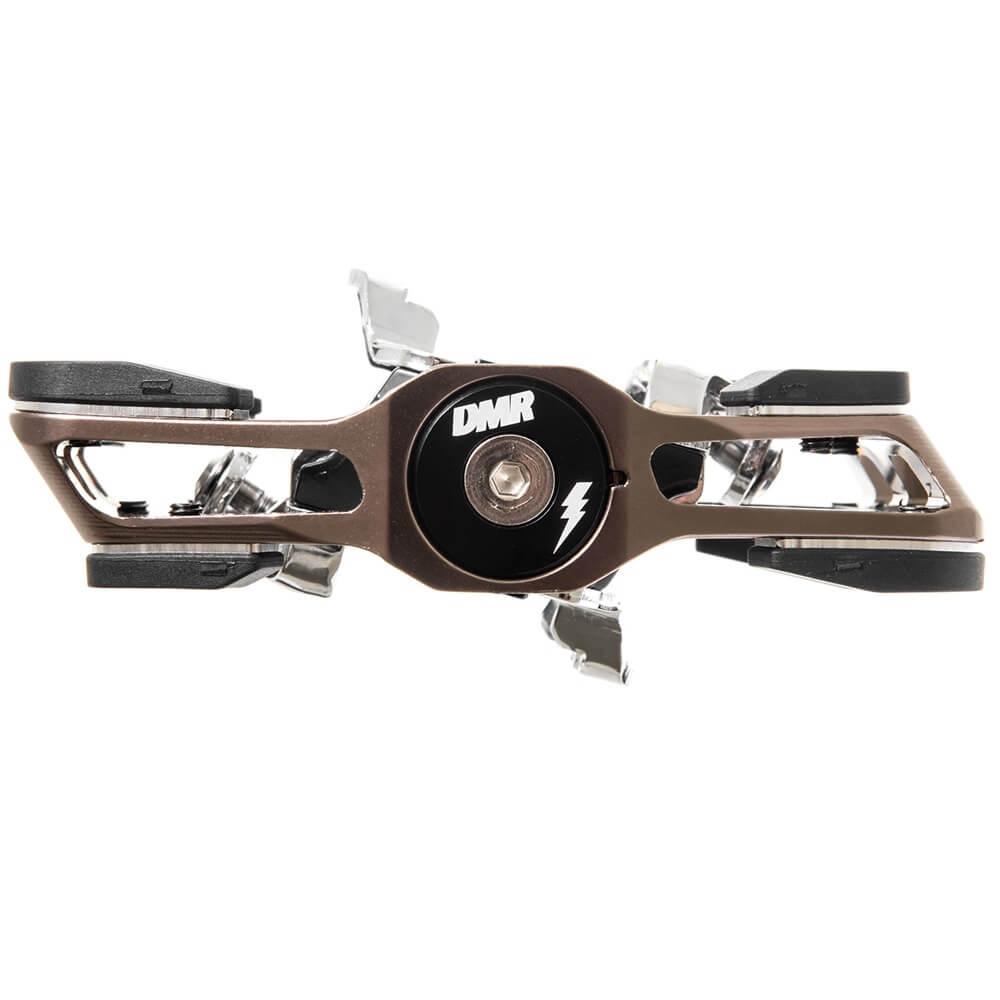 Με βάση την παγκοσμίως γνωστή τεχνολογία SPD, η βρετανική εταιρεία δημιούργησε τα DMR V-Twin Clip In, τα πιο προσαρμόσιμα πετάλια clipless της αγοράς, για χρήση MTB! Τα κορυφαία πετάλια DMR V-Twin Clip In, προσφέρουν ένα τεράστιο αριθμό διαφορετικών επιλογών πατήματος και αίσθησης. Χρησιμοποιώντας 7 pins, σε συνδυασμό με ένα μοναδικό, ρυθμιζόμενο σύστημα “Bumper” – απο Nylon και μεταλλικές προσθήκες, τα πετάλια μπορούν να προσαρμόσουν τα πόσο δύσκολα ή εύκολα θα κουμπώνουν τα σχαράκια και το πόσο σταθερό θα είναι το παπούτσι, ώστε σε συνδυασμό με το ρυθμιζόμενο float να καλύψουν τις οδηγικές προτιμήσεις του αναβάτη, βελτιώνοντας την οδηγική εμπειρία. Όπως είναι αναμενόμενο, τα πετάλια DMR V-Twin Clip In ξεχωρίζουν για την ανθεκτικότητα και την αξιοπιστία τους, που διασφαλίζονται απο το αλουμινένιο CNC σώμα και τον υπερενισχυμένο 4140 cro-mo άξονα, ο οποίος εδράζεται σε επισκευάσιμα ρουλεμάν. Χαρακτηριστικά Χρώμα: Nickel GreyΥλικό Κατασκευής: ΑλουμίνιοΒάρος: 546γρ. (το ζευγάρι)Σχαράκια: SPD 5 μοίρες Float (περιλαμβάνονται)